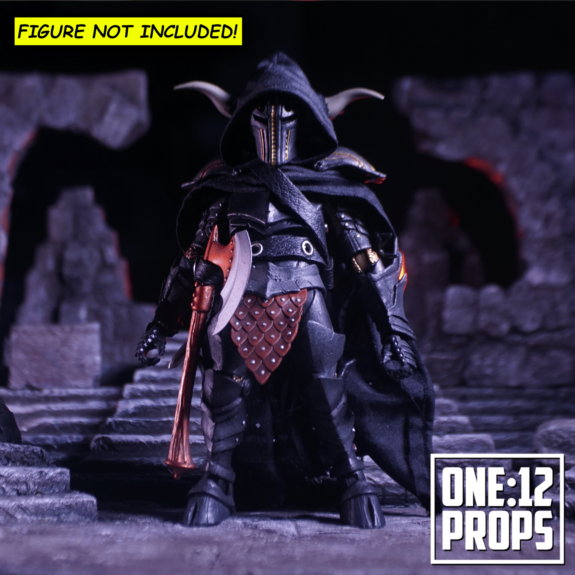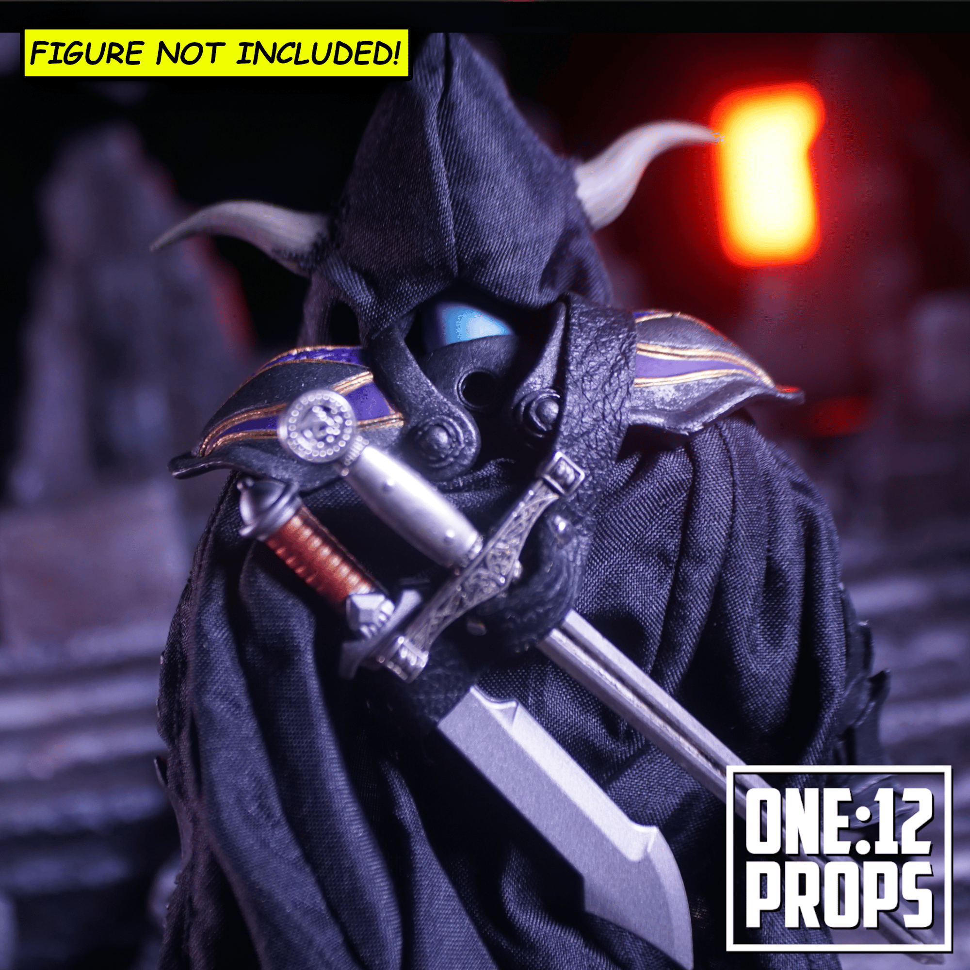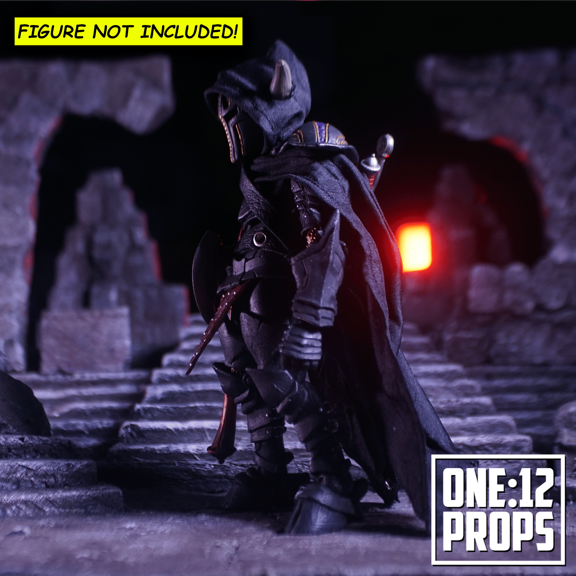 Upgrade your Mythic Legions Malepharr with this custom wired cape and hood and utility belt that can store 3 weapons.